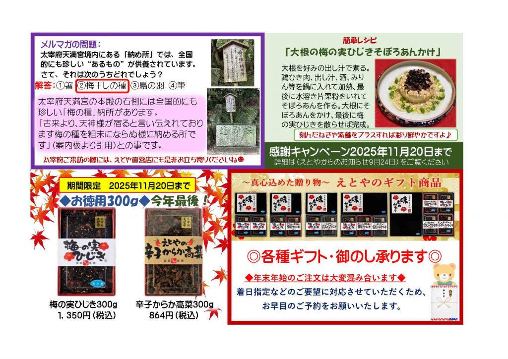 メルマガ♪答え:お徳用300gは今年最後?急いで!急いで!