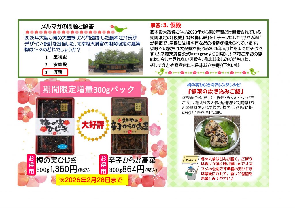 メルマガ♪答え:大好評♪梅の実ひじき増量300gパック♪まもなく終了